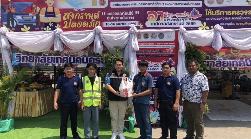 วันอังคารที่ 14 เมษายน 2569 นายประเสริฐ ถึงวิสัย ผู้อำนวยการวิทยาลัยการอาชีพองครักษ์ ได้มอบหมายให้ นายชัยยศ มีสวัสดิ์ รองผู้อำนวยการฝ่ายวิชาการ ได้เยี่ยมชมศูนย์ปฏิบัติการป้องกันและลดอุบัติเหตุทางถนนช่วงเทศกาลสงกรานต์ พ.ศ. 2569 จังหวัดนครนายก ระหว่างวันที่ 10-16 เมษายน 2569 สถานีบริการน้ำมัน ปตท. สาขา ป.เฮง นครนายก ตำบลพรหมณี อำเภอเมืองนครนายก จังหวัดนครนายก โดยให้บริการตรวจสภาพรถยนต์ รถจักรยานยนต์ เปลี่ยนถ่ายน้ำมันเครื่อง เติมลม และบริการซ่อมเบื้องต้น ตลอดจนอำนวยความสะดวกให้แก่ประชาชน เพื่อลดอุบัติเหตุและเดินทางปลอดภัยในช่วงเทศกาลสงกรานต์ เพื่อร่วมรณรงค์สร้างความตระหนักด้านความปลอดภัยและลดความสูญเสียจากอุบัติเหตุบนท้องถนน